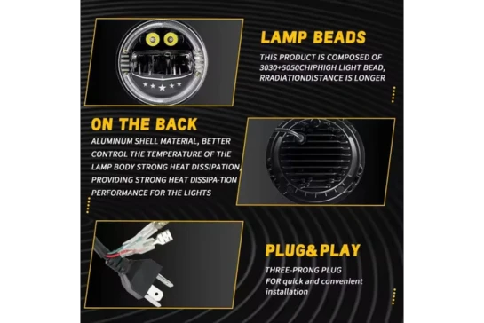 HJG Minus with Ring Headlight with DRL & Cool Amber Light – High/Low Beam, 12V Compatible with Royal Enfield, Thar, and Gypsy